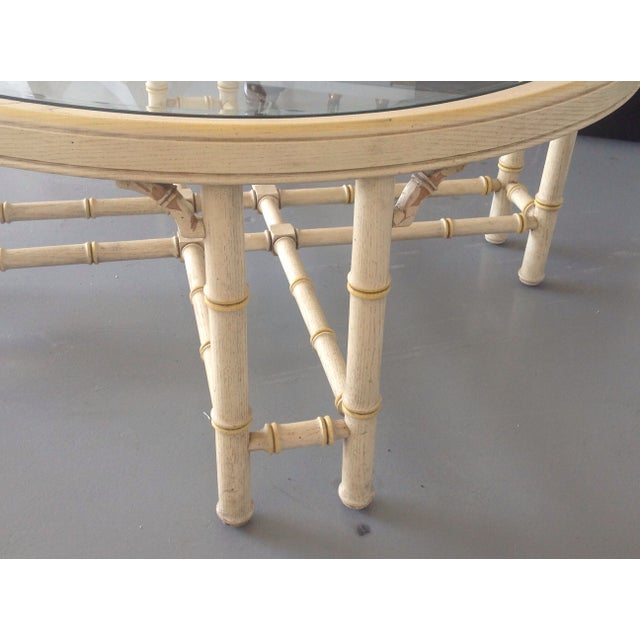 Hollywood regency chinese antique silver iron glass bamboo accent end table. Only 1 available and it's in 3 people's carts. Original, clean, ready to use condition. Italian midcentury brass faux bamboo coffee table with glass top and stretcher. Crafted from metal, both the table and barstools feature tapered legs and bamboo tops, as well as footrests for comfort.